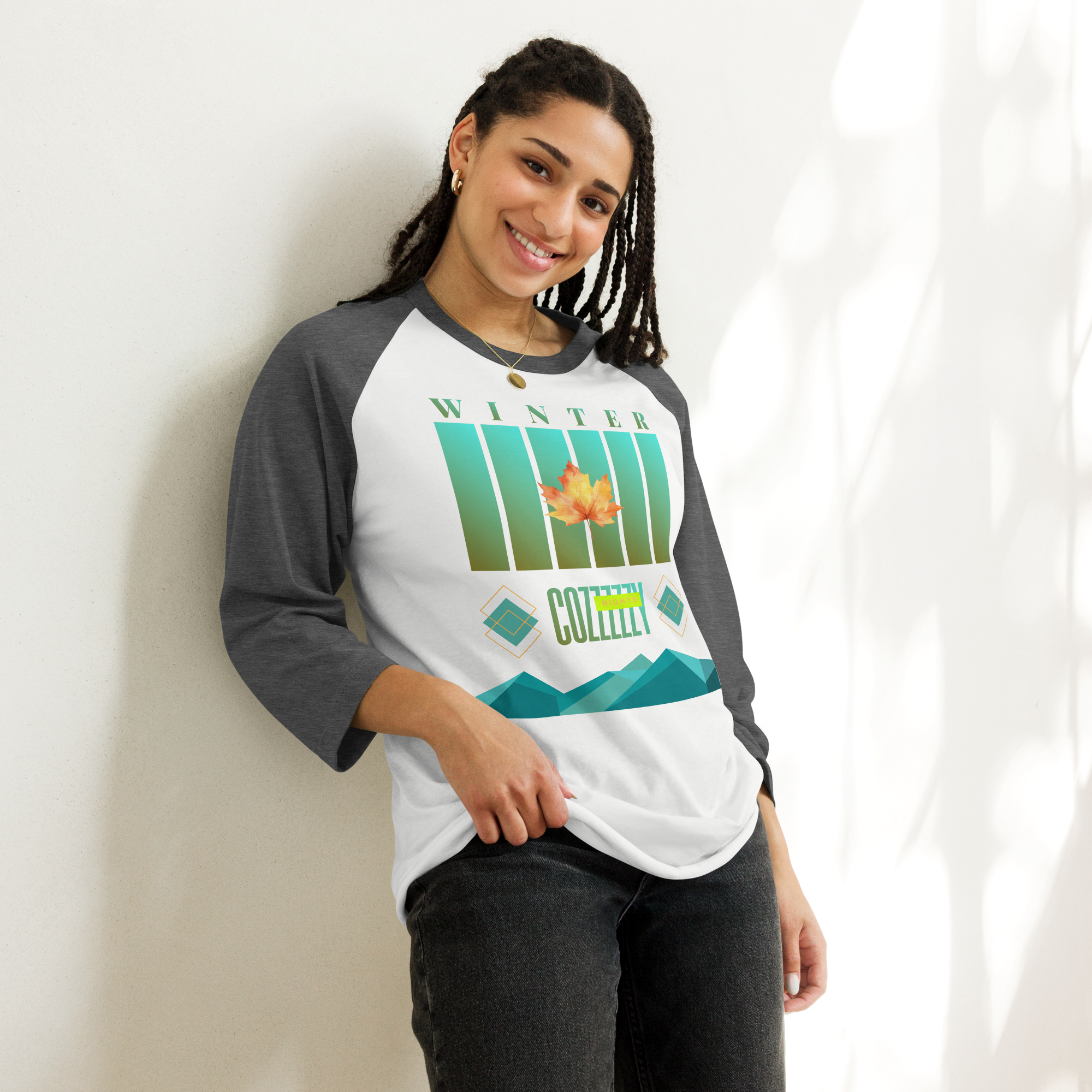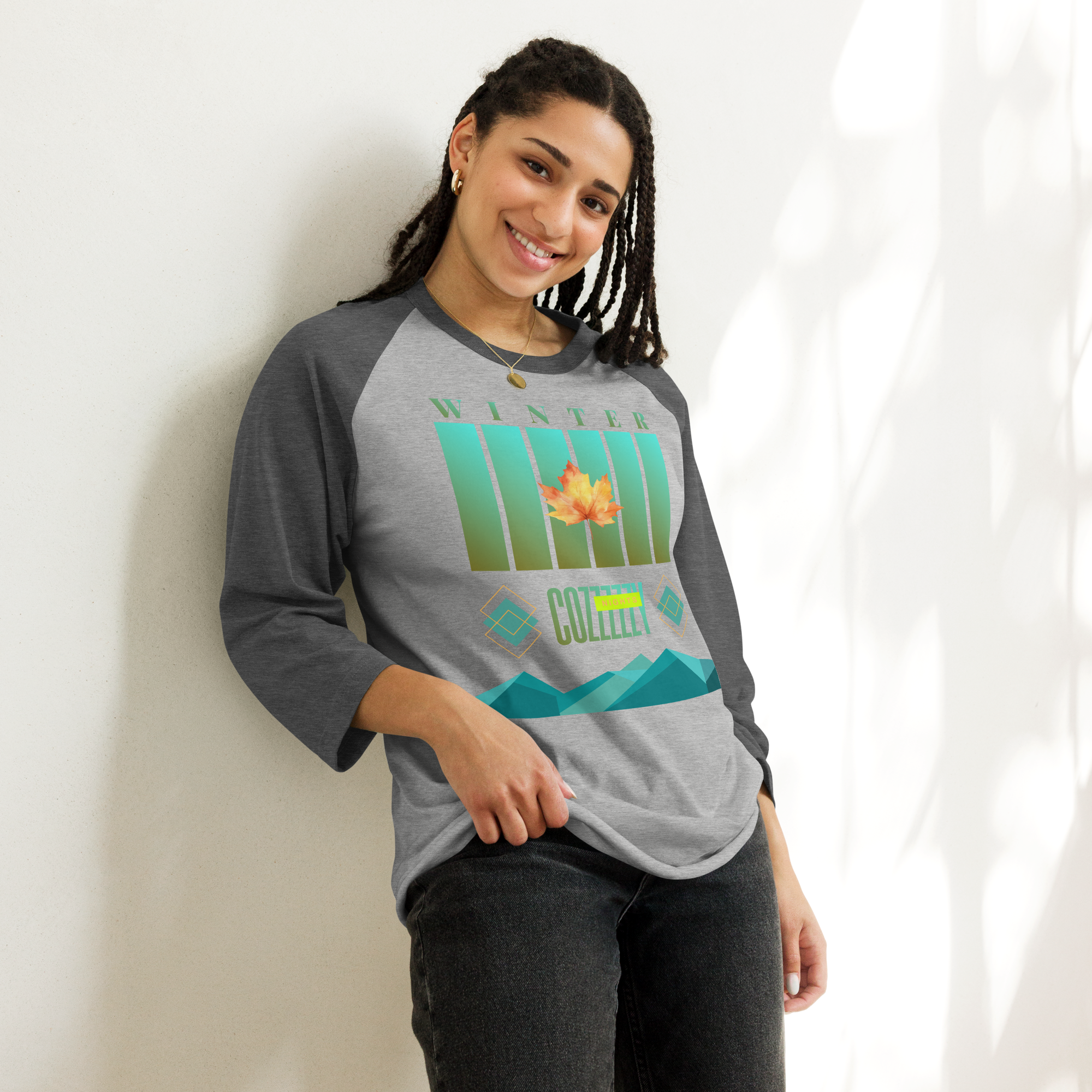 3/4 sleeve raglan shirt Winter Cozy Nights