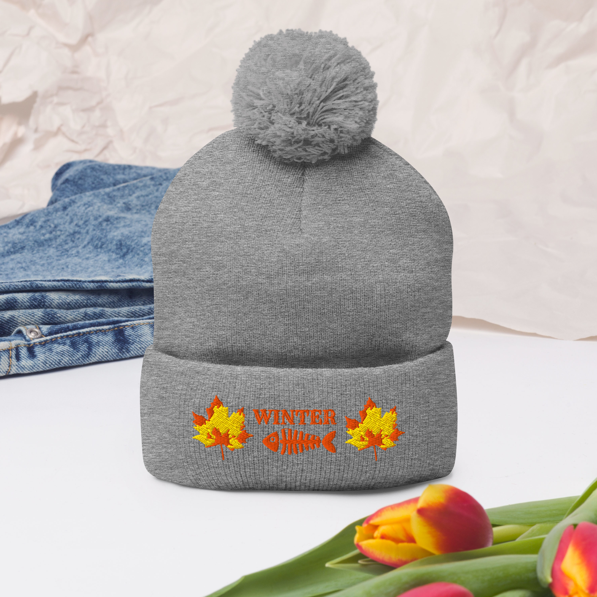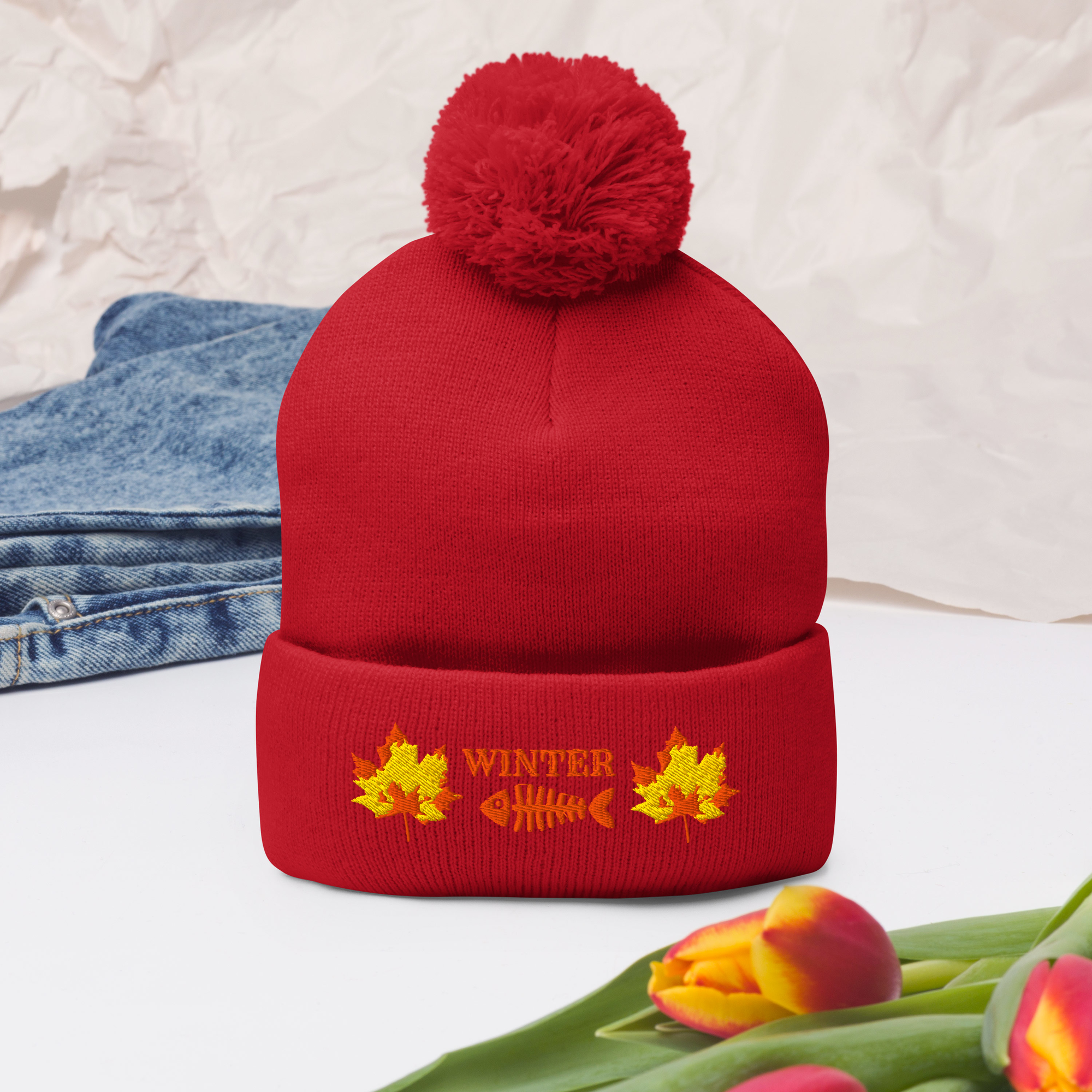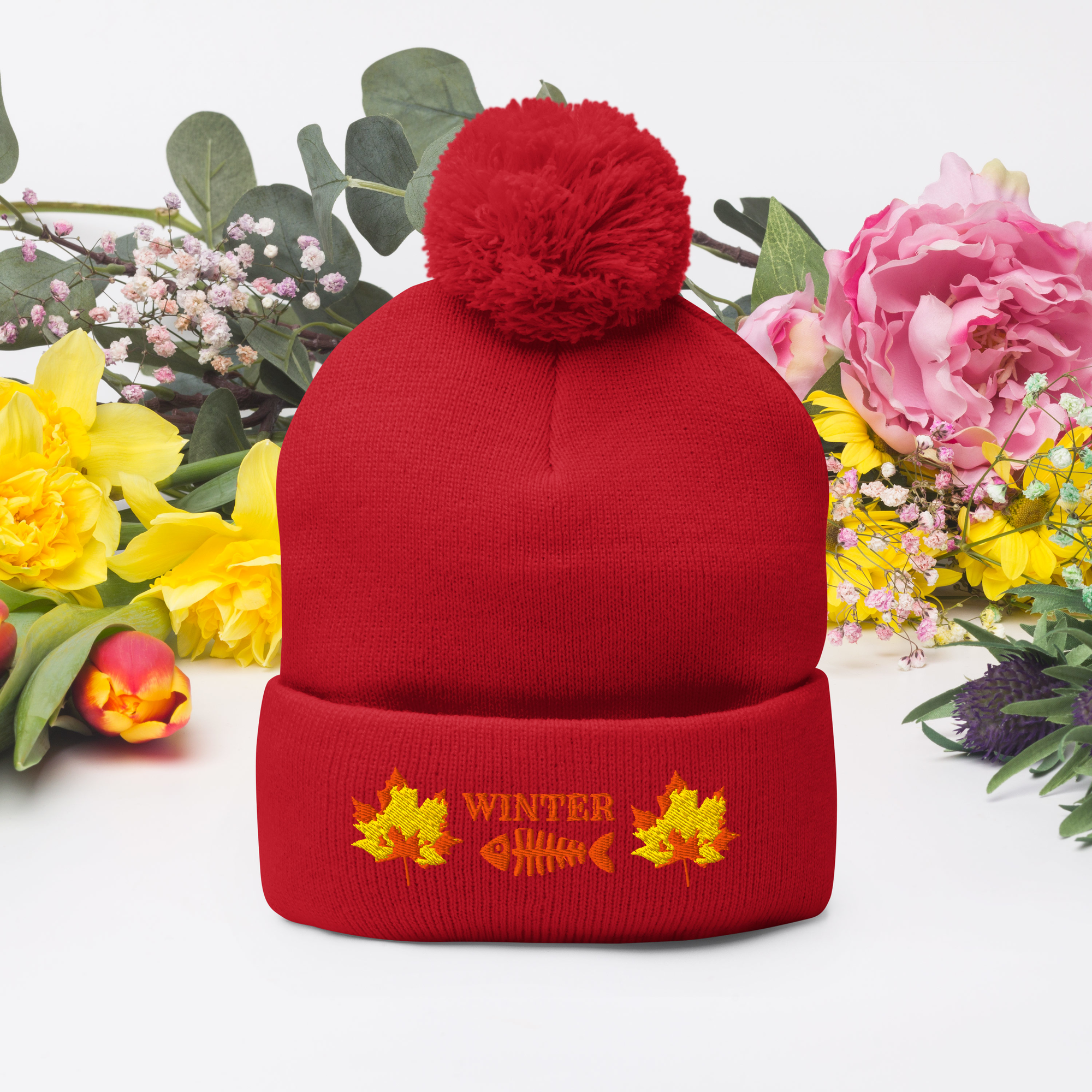 Expand your wardrobe with a classic embroidered beanie. Finished with a pom-pom on top, it offers tons of warmth and comfort, and is destined to find its way into all your favorite cold-weather looks.